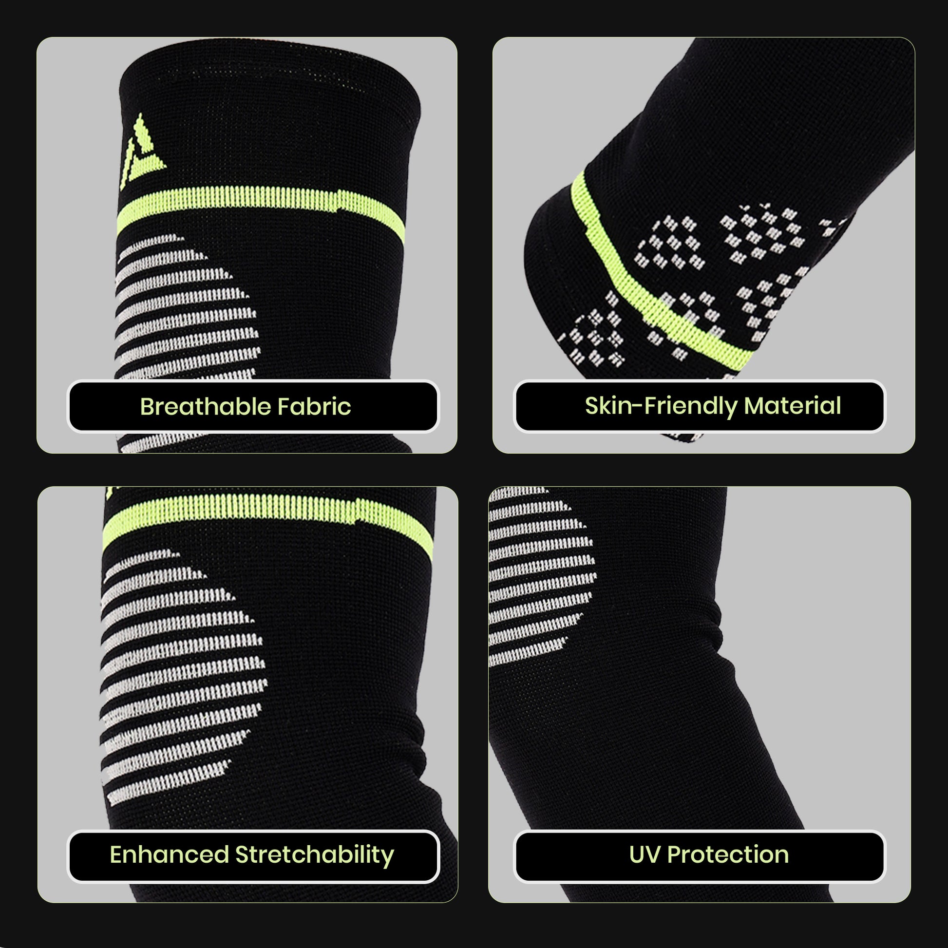Whether you're hitting the gym, cycling, playing sports, this sleeve delivers on every front. The stretchable material ensures a snug fit without restricting movement, while its seamless design prevents irritation or chafing.